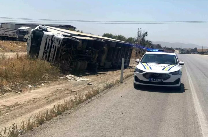 Konya'nın Ereğli ilçesinde denetimden çıkarak devrilen tırın şoförü, kazayı hafif sıyrıklarla atlattı. Olay yerine...
