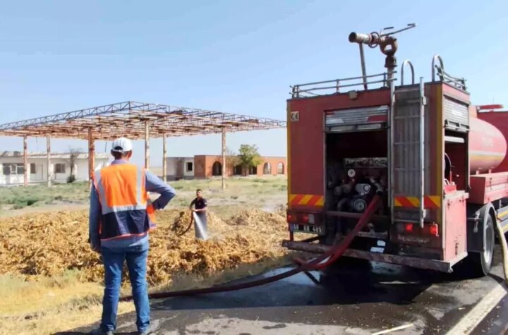 Aksaray-Konya kara yolunda bir tırın dorsesindeki samanların tutuşmasıyla başlayan yangın, başka şoförlerin ihtarlarıyla denetim...
