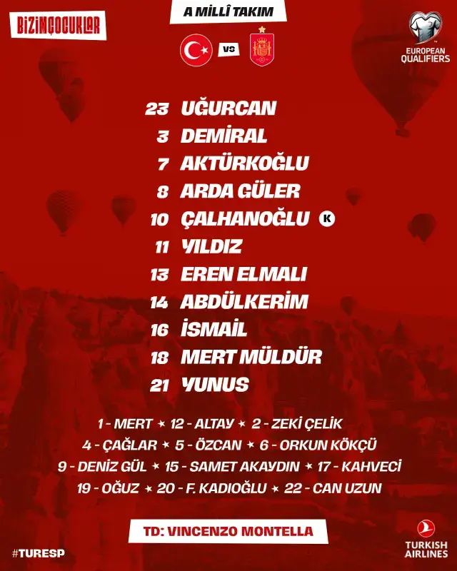 Konya Büyükşehir Stadyumu’nda oynanacak gayret saat 21.45’te başlayacak. Kuvvetli maçta İngiltere Futbol Federasyonu’ndan Michael Oliver düdük çalacak. Oliver’e yan hakemler Stuart Burt ve James Mainwaring eşlik edecek. İşte, Türkiye İspanya maç kadrosu!
